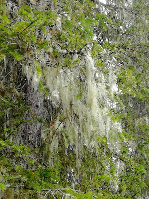Naavan voi kuitenkin sekoittaa myös luppoon. Naava on väriltään vaaleampaa kuin luppo. Suomen Luonto -lehden mukaan "Naavan ja lupon ero paljastuu venyttämällä. Naavan keskusjänne venyy kuminauhamaisesti, lupolla sitä ei ole." No, me tietenkään emme repineet naavaa puista, joten lopullinen lajimäärittely karkealla tasolla jäi tekemättä, mutta värin perusteella arvelisin, että kyse oli naavasta. Naavat ja lupot ovat hyvin herkkiä ilman saasteille, varsinkin rikkidioksidille. Siksi ne viihtyvät vanhoissa metsissä. Lisää naavasta ja luposta voi lukea Suomen Luonnon kiinnostavasta artikkelista.